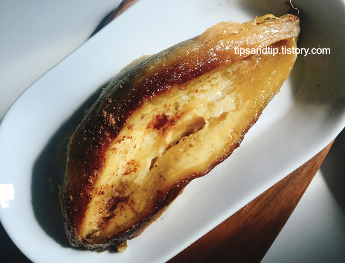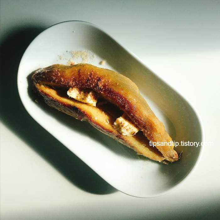 재료 : 구운 혹은 찐 고구마, 버터 약간, 설탕 약간, 시나몬 파우더