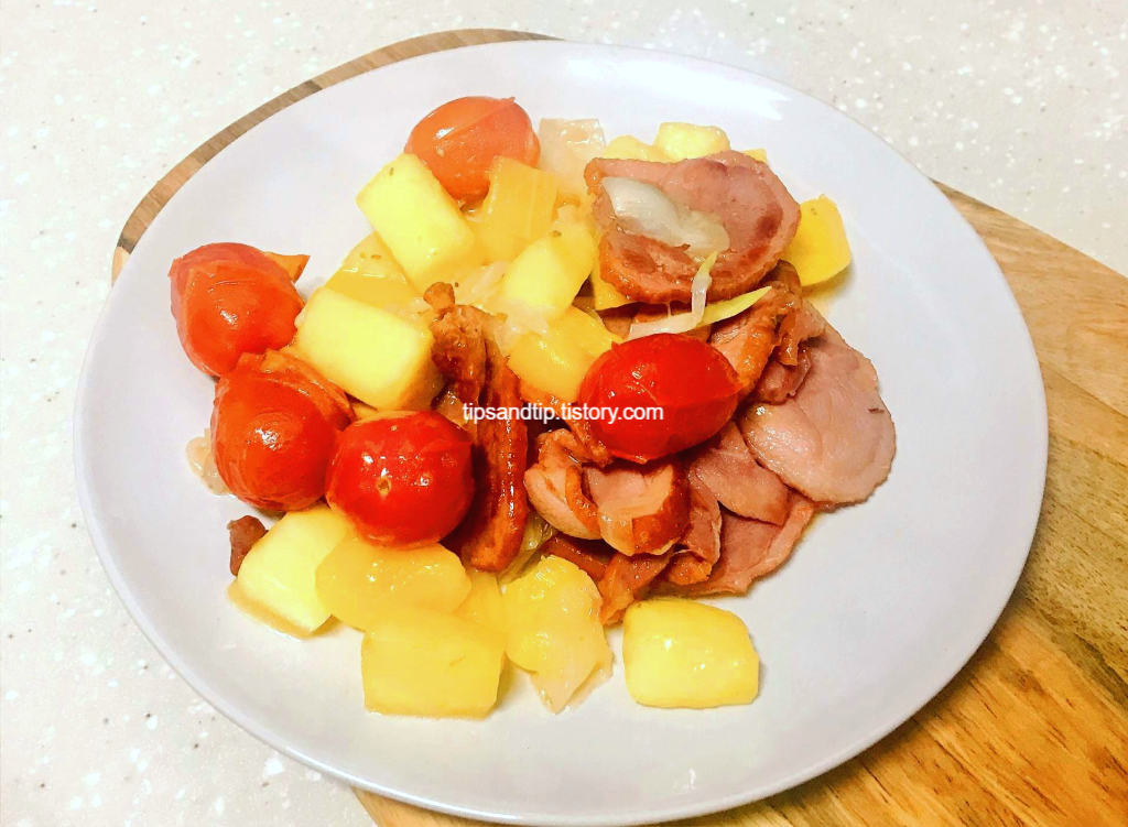 덜 익은 망고는 이렇게 익혀 드셔보세요. 훈제 오리가 아니더라도- 볶아서 먹으면 맛있는 야채나 닭고기, 돼지고기, 소고기 다 잘 어울릴 것 같아요!
