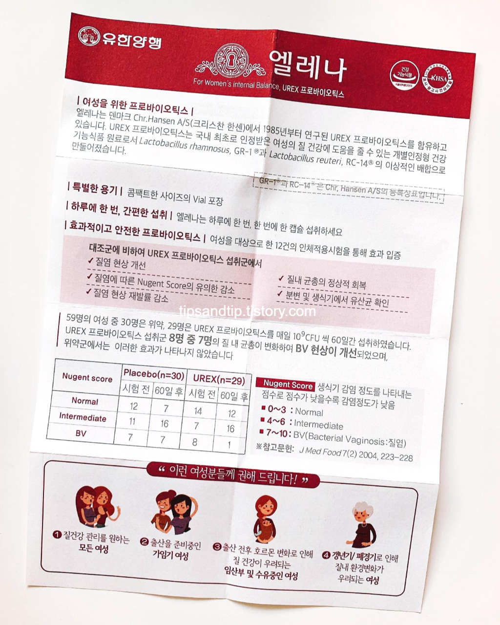엘레나는 덴마크 Chr.Hansen A/S(크리스찬 한센)에서 1985년 부터 연구된 UREX 프로바이오틱스를 함유하고 있습니다. UREX 프로바이오틱스는 국내 최초로 인정받은 여성의 질 건강에 도움을 줄 수 있는 개별인정형 건강기능식품 원료로서 Lactobacillus rhamnosus, GR-1과 Lactobacillus reuteri, RC-14의 이상적인 배합으로 만들어졌습니다.